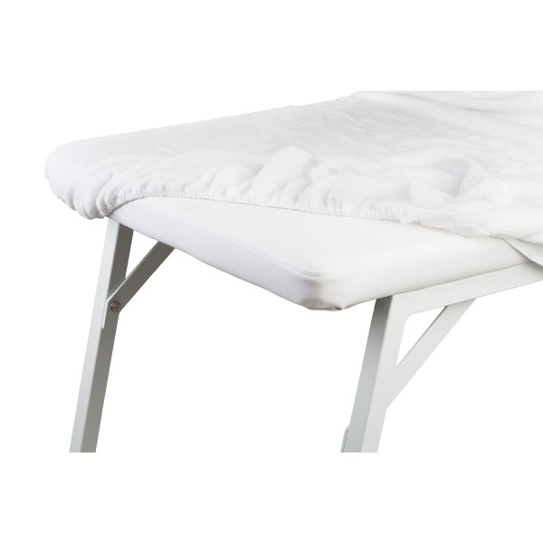 Coprilettino in spugna 100% cotone con angoli elasticizzati, di colore bianco.
