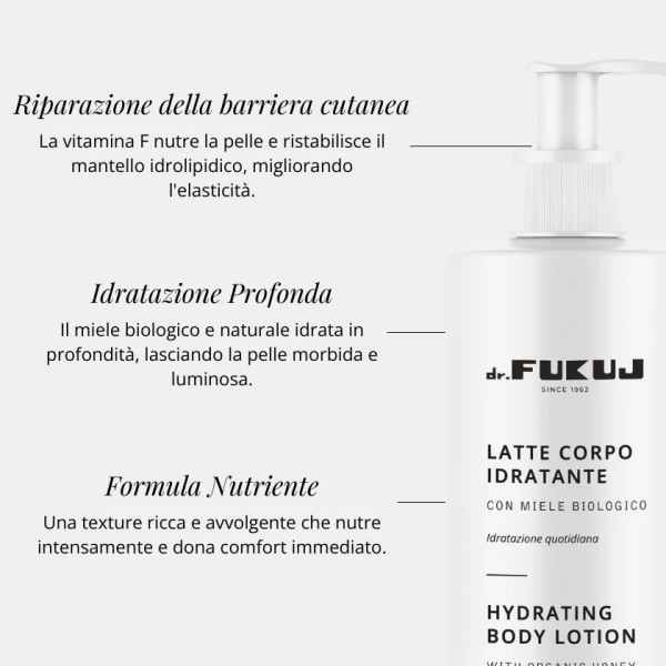 Il formulato è più ricco di olii di tipo eudermico rispetto alle comuni emulsioni cosmetiche: tale prerogrativa risulta indispensabile nel dopo bagno e dopo le normali esposizioni ai raggi UV naturali o solari quando il massaggio tonificante deve necessariamente prolungarsi qualche minuto in più rispetto alla pura e semplice applicazione del prodotto. In tal modo risulta facilitata l''azione rinvigorente cutanea dell''automassaggio. Al termine la cute rimane arricchita di un film di olii naturali che oltre a reidratarla cedono lentamente un delicato profumo (solo da olii essenziali ipoallergenici testati a norme IFRA) che la mantiene fresca a lungo. La pelle, che risulta così protetta dalla disidratazione, riceve un ulteriore apporto idratante diretto dagli zuccheri e dalle altre sostanze nutritive proprie del MIELE NATURALE presente nella formulazione. Ridona forza ai tessuti e morbidezza alla pelle e previene inestetismi e rugosità. Disponibile anche nella versione Senza Profumo